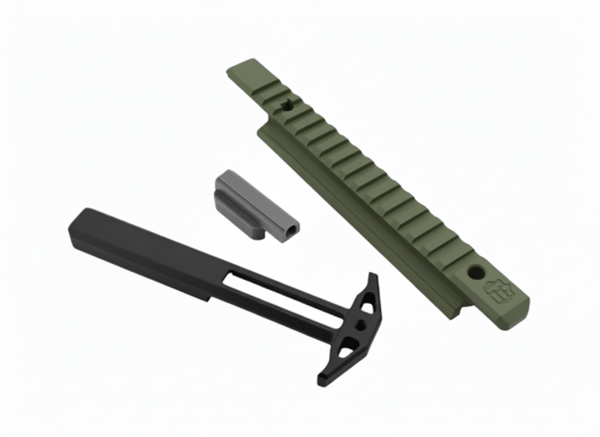 Produced in collaboration with Alex’s Homebrew, this is an AR charging handle kit for the TM22 and can be made to fit the standard Derya TM22 or the RIA feather. The handle is made out of 6061 aluminum and the top plate is made from a durable nylon-like resin that’s been sanded and painted for a smooth finish.